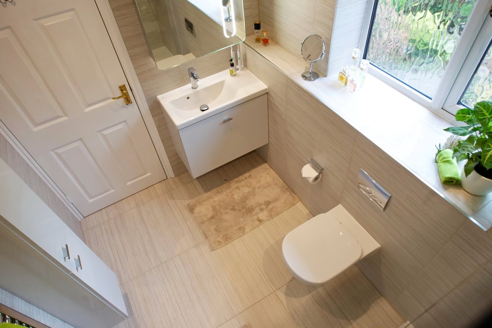 We also thought carefully about storage, which the couple were struggling with in their previous bathroom. By adding in storage units that matched perfectly with the soft beige colour scheme, as well as an Ideal Standard mirror cabinet, there was optimal storage space for the couple.