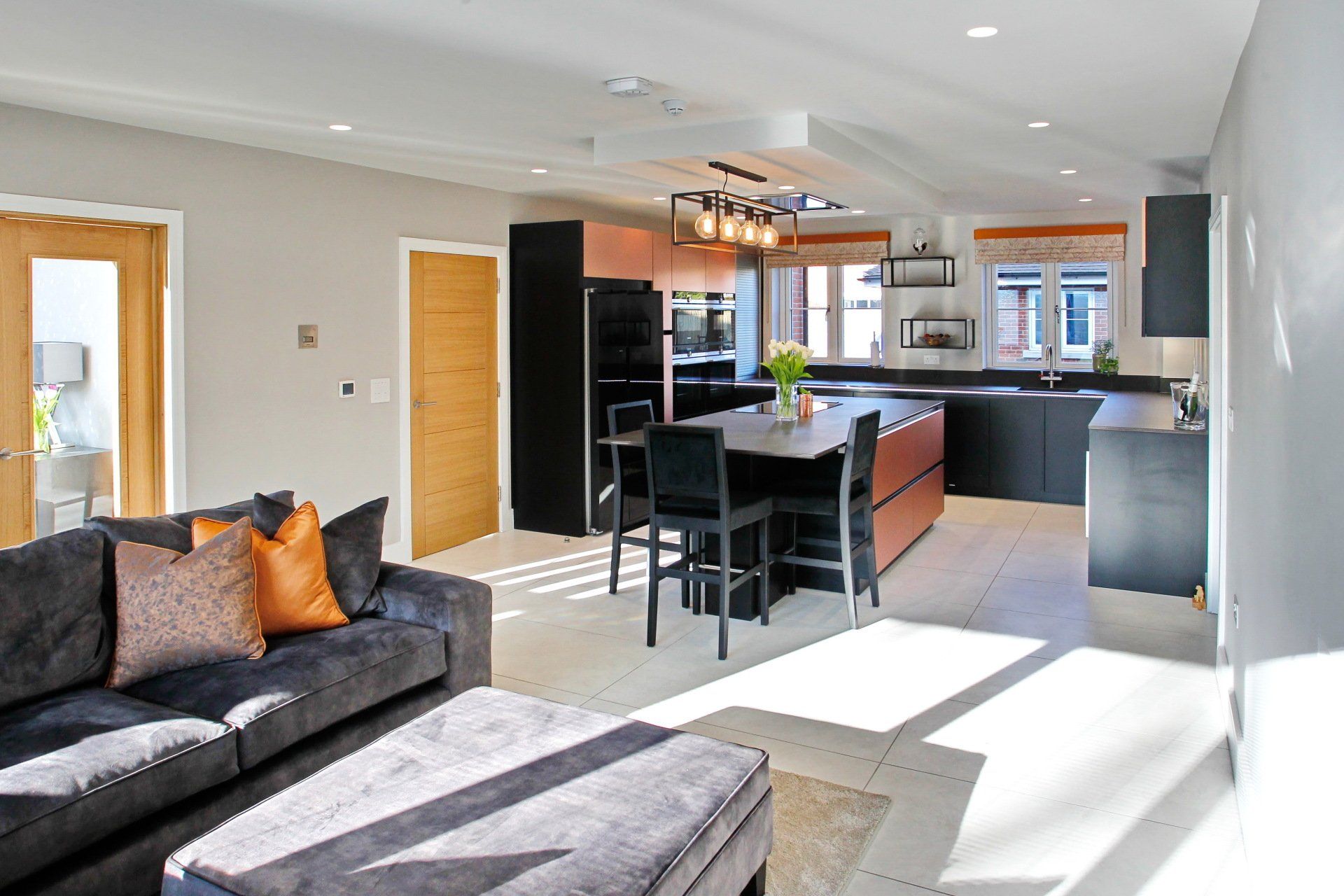 This client had a distinct preference for stylish, bold colourways, and to reflect this, the interior designer took shades from the copper of the kitchen design to work into the blinds and soft furnishings which finished our project. This installation was a pleasure to bring to life, as we were able to ensure that the indoor living space fully reflected the lifestyle choices of the customer, evolving from simple foundations into a beautifully finished family home.