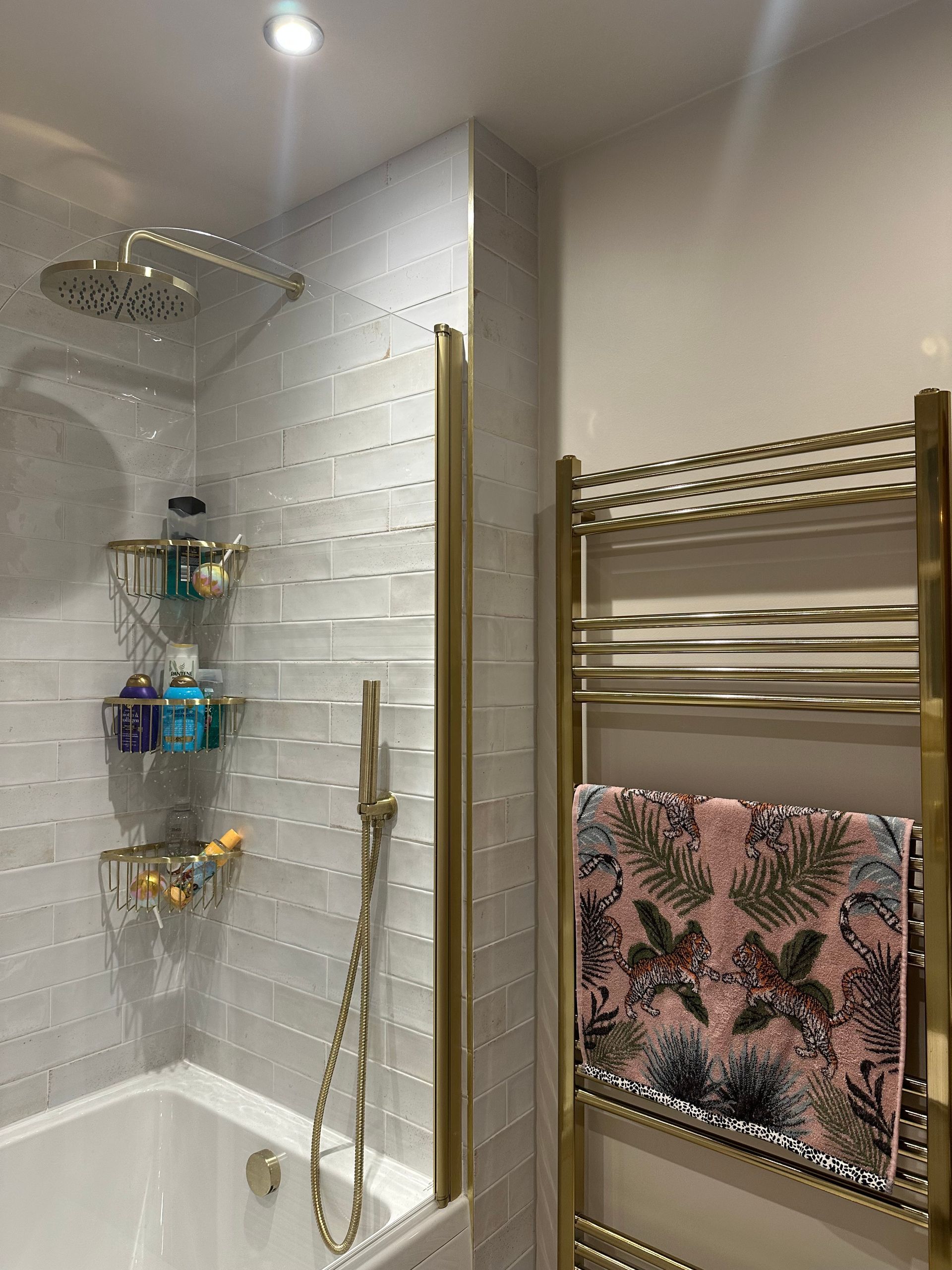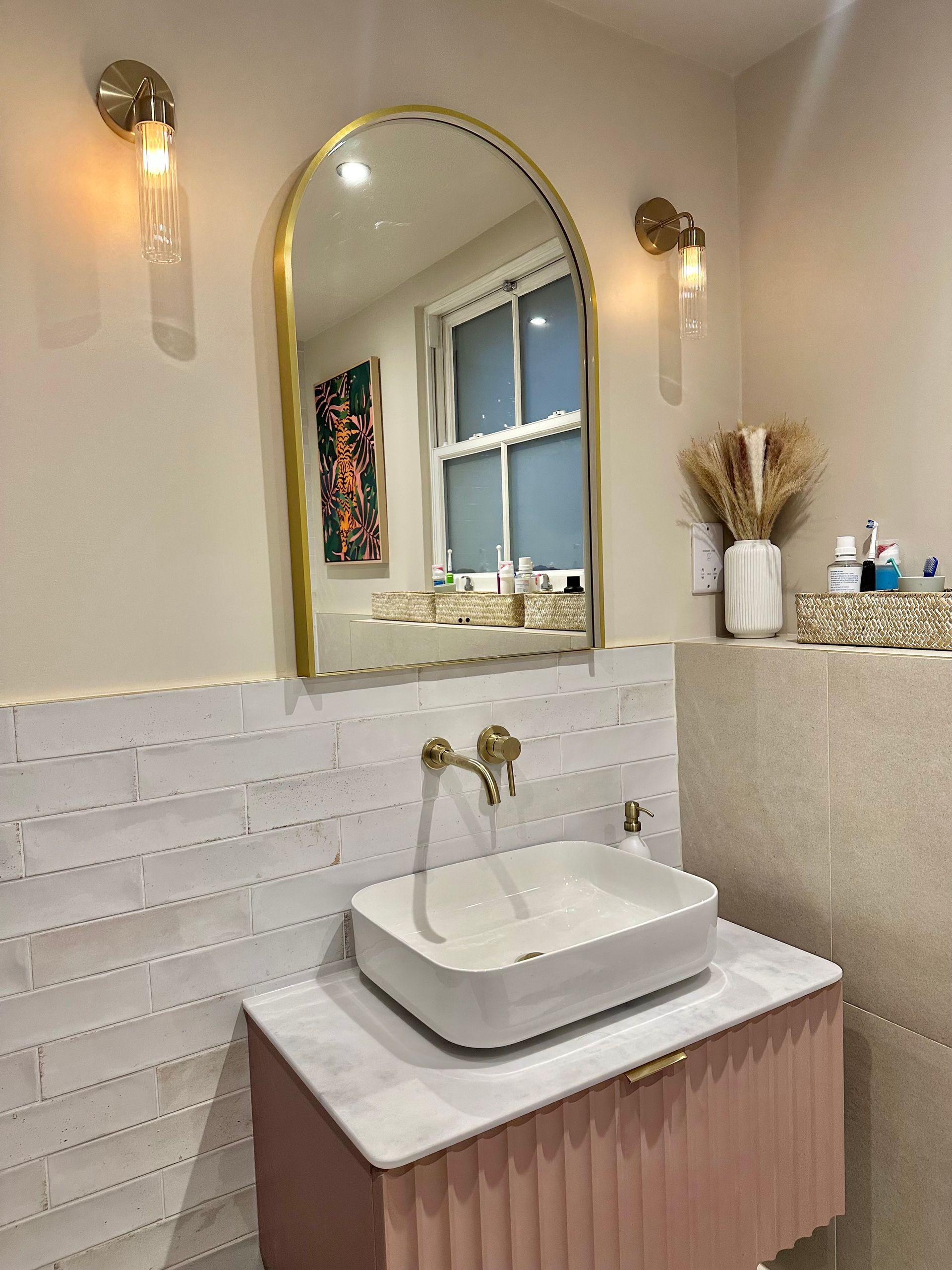 Mrs Gilbert came to us after seeing one of our advertising boards at a neighbouring property. She was looking for a bathroom renovation and had a clear vision in terms of the aesthetic. She came into the showroom and showed us the Pinterest boards she had created for inspiration; brass finishes, brick tiles and warm colours all featured, so that's exactly what we created.